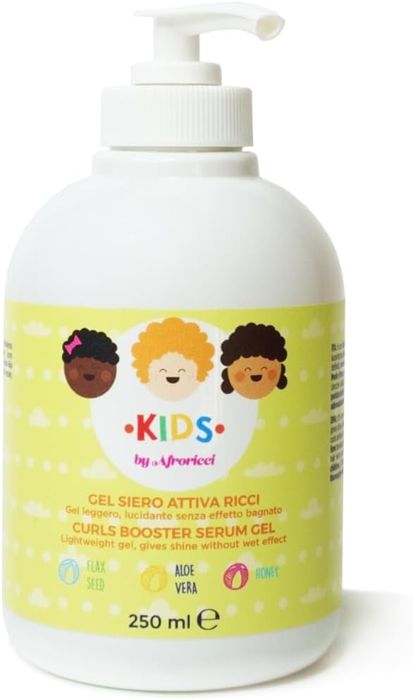 Le Gel-Sérum Attiva Ricci de la gamme Kids par AfroRicci est un styler léger et définissant spécialement formulé pour les enfants aux cheveux bouclés, frisés ou afro. Il combine la texture d’un gel et la lumière d’un sérum pour offrir une hydratation brillante, une définition des boucles et un contrôle du frizz, sans effet mouillé ou film dur.